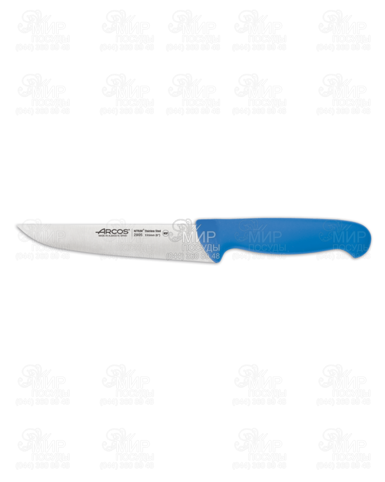 Ніж кухарський 2900 від іспанського виробника Arcos виготовлений з нержавіючої сталі NITRUM. Розроблено спеціально для професійних кухарів. Має поліпропіленову ергономічну ручку синього кольору, зручну і безпечну, яка з'єднується з лезом методом упорскування. Даний пластиковий матеріал є гігієнічним, добре витримує удари, не ковзає та стійкий до високих температур.