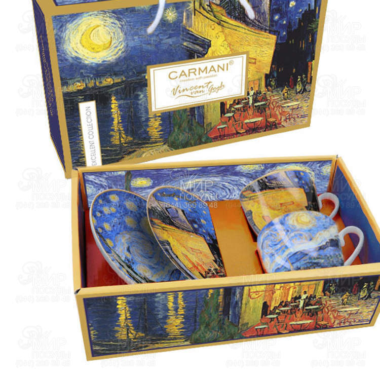 Чашки з блюдцями Carmani з принтом у вигляді репродукцій картин всесвітньо відомих художників абстракціоністів стануть чудовим подарунком для поціновувачів мистецтва та підкреслять чудовий смак дарувальника. Яскраві кольори, малюнки з картин дуже витончено та стильно виглядають на гуртках та чашках класичної форми.