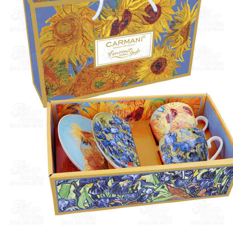 Світ посуду - Столовий посуд - Чашки - Набори чайних чашок - Набір чашок для чаю з блюдцями Ван Гог Соняшники, Іриси 250мл 830-7120