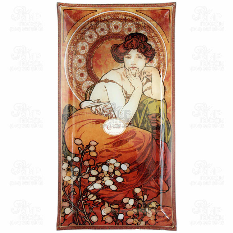 Блюдо прямокутне Альфонс Муха Рубін 46х24см 198-2503