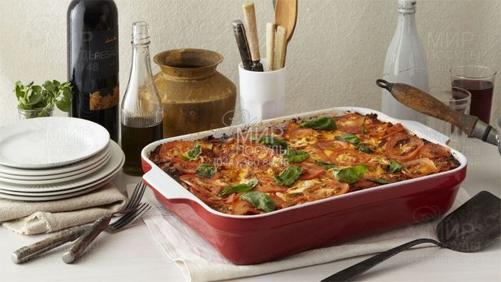 Форма для запікання від французького виробника Emile Henry виготовлена з високоякісної вогнетривкої кераміки та покрита склоподібною глазур'ю. Це прямокутна форма із двома ручками для зручної експлуатації. У цьому посуді можна, не тільки смачно готувати, а й презентабельно подавати готові страви. Міцна глазур форми не дряпається, тому сміливо можна розрізати пиріг або лазіння відразу в ній.
