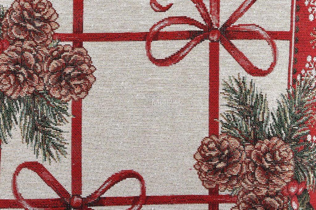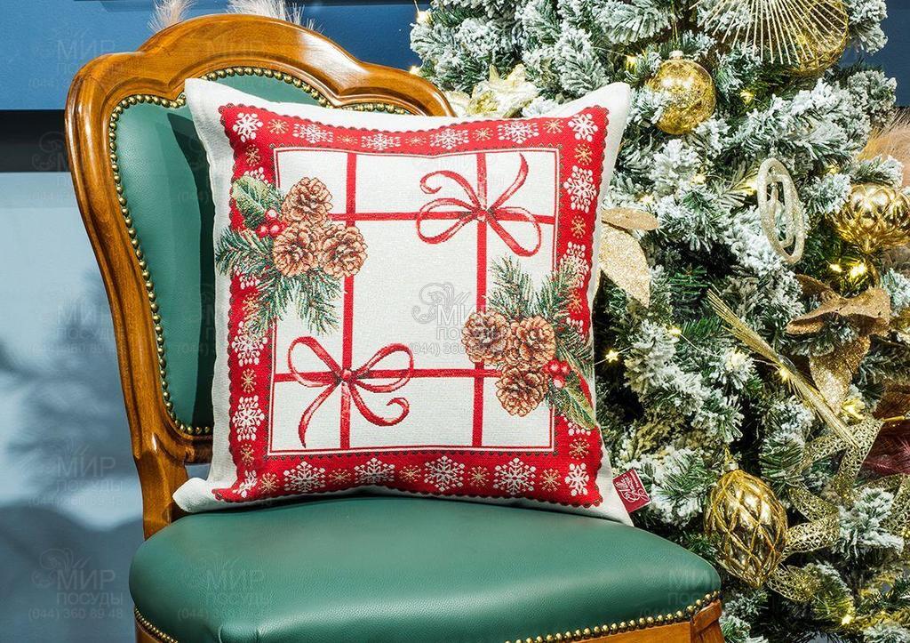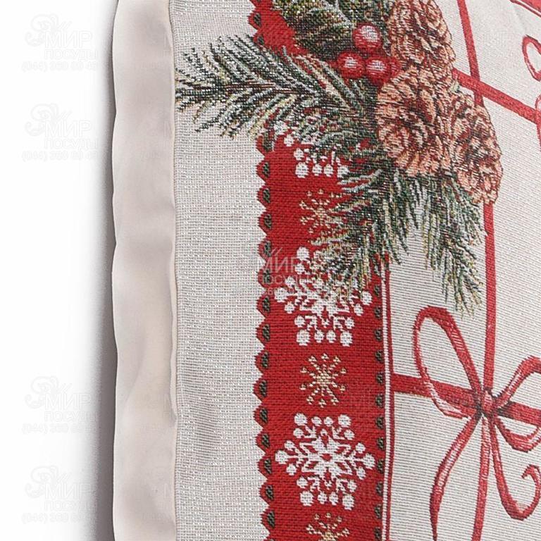 Гобеленова наволочка «Пишна гірлянда» передасть символізм зимових урочистостей, але не порушить затишну атмосферу інтер'єру. У малюнках, зітканих їхніх сотень різнокольорових волокон, присутні ефектні багряні акценти, витончені бантики та декор із ялинових гілок. Мерехтіння люрексових сніжинок створює на поверхні жаккардового полотна м'які блискучі переливи.