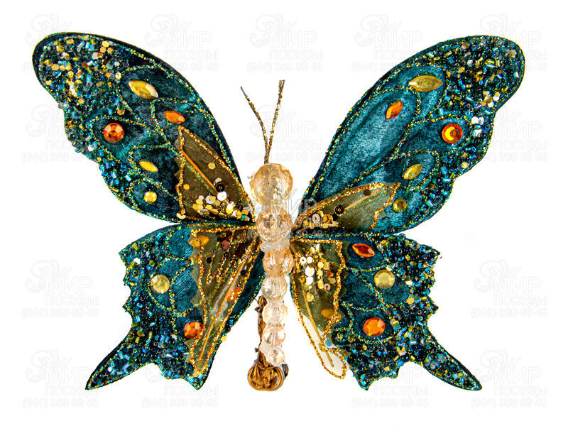 Світ посуду - Домашній інтер'єр - Новорічний декор - Ялинкові іграшки - Ялинкова іграшка Новий рік Метелик 7х9см 66-180