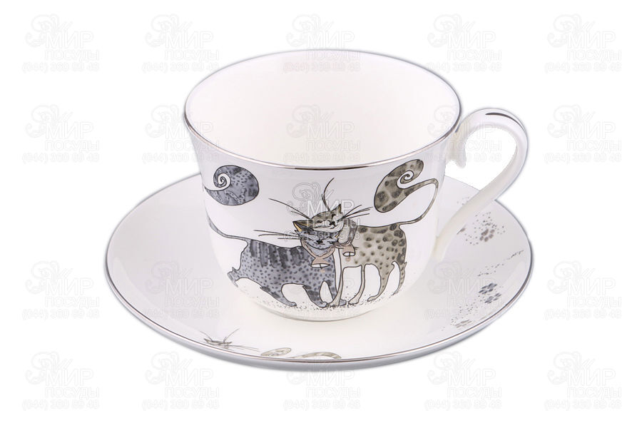 Світ посуду - Столовий посуд - Чашки - Чайні чашки - Чашка для чаю з блюдцем Веселі коти 420мл 264-531