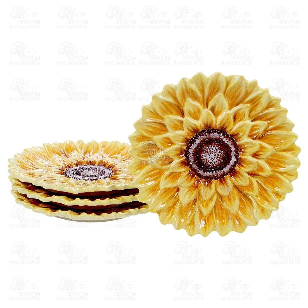 Десертні тарілки, створені у неповторному дизайні, який розробила художниця Сьюзан Уінгет, можна використовувати як декоративні предмети святкового сервірування або подавати на них печиво, булочки чи салати зі свіжих овочів та зелені. На керамічних виробах у вигляді яскравих квіток соняшника, розфарбованих вручну, можна розташовувати запалені свічки – ефектна атмосфера забезпечена.