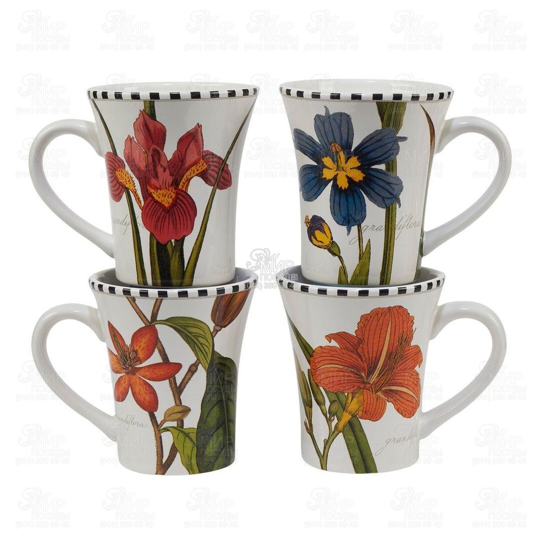 Принесіть вишукані нотки романтики у ваше звичне чаювання разом із керамічними гуртками із флористичної колекції «Квіткова рапсодія» від американського бренду Certified International. На кожну з чотирьох чашок із елегантним обідком із чорно-білої клітки нанесено великі зображення шляхетних садових квітів – такий ефектний дизайн був придуманий сучасною художницею Сью Шлабах.
