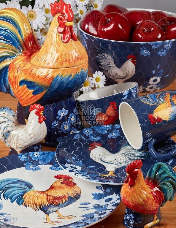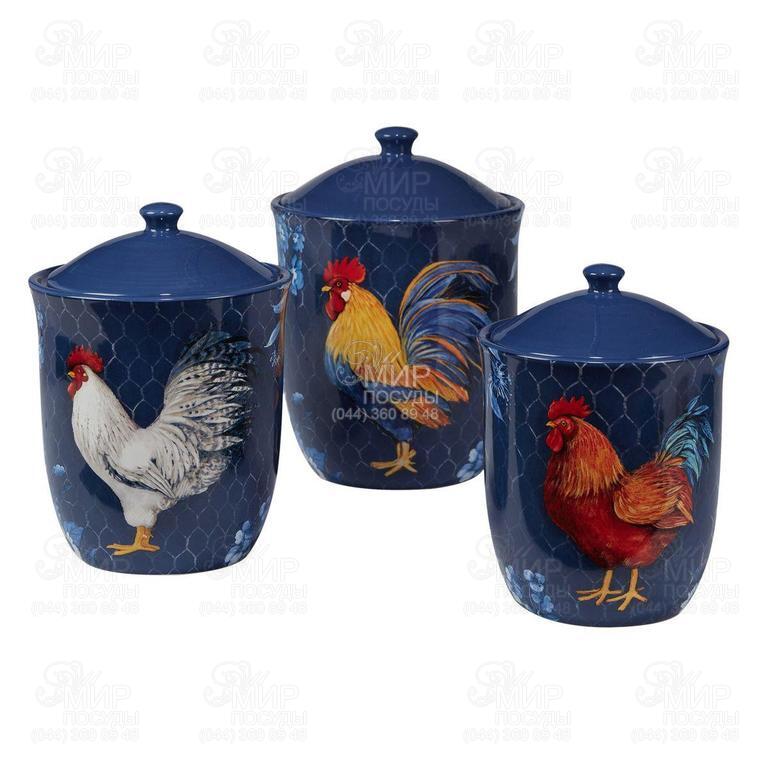 Керамічні ємності, призначені для зберігання сухих сипких продуктів або печива, стануть гармонійним доповненням кухонного інтер'єру, оформленого як у класичному стилі, так і з елементами кантрі і Прованс. Оригінальний дизайн створила популярна американська художниця Сьюзан Уінгет, яка на глянсовій поверхні відтінку індиго розмістила яскравих півнів та вишукане квітково-сітчасте тло. Темно-сині контейнери мають різний розмір та оснащені герметичними кришками, які повністю захищають від потрапляння всередину вологи та комах.
