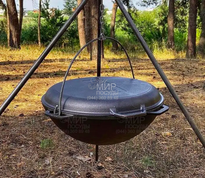 Азіатський чавунний казан з кришкою-сковорідкою призначений для приготування страв на багатті або мангалі, що потребують гасіння, томлення та приготування у власному соку. Товсті стінки та напівсферичне дно акумулюють тепло по всій поверхні казана, та сприяють рівномірному приготуванню їжі. М'ясо, плов та інші страви, приготовані в казані з чавуну, смачні, соковиті і мають просто неймовірний насичений аромат. Чавунний казан стійкий до пошкоджень. Незамінний помічник у поході, на дачі та відпочинку на природі.