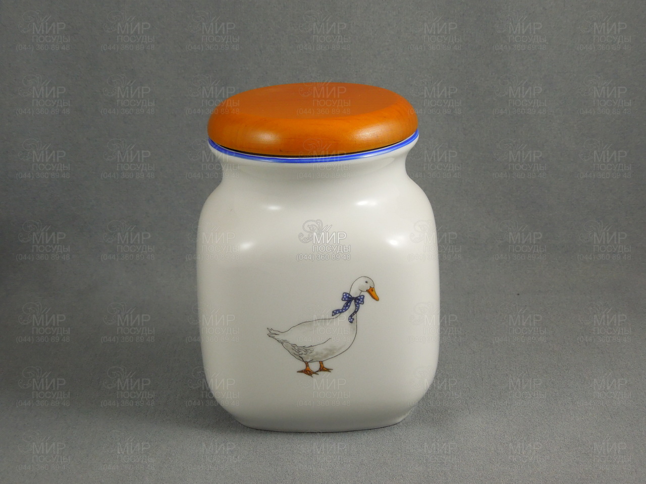 Світ посуду - Кухонний посуд - Ємності для продуктів - Банки для сипких - Ємність із дерев'яною кришкою Гуси 8134413 0,6л