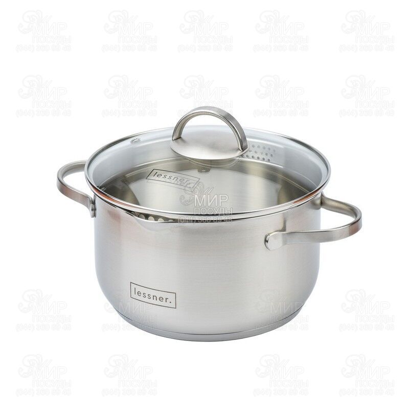 Каструля Lessner виготовлена з високоякісної корозійностійкої сталі. Каструля ідеальна для приготування здорової їжі з мінімальною кількістю жиру, що забезпечує зниження втрати корисних вітамінів, мінеральних речовин і зберігає аромат страв, що готуються. Кришка, виготовлена з термостійкого скла, дозволить вам стежити за процесом приготування їжі. Кришка оснащена металевим ободом з отворами для зливу та отвором для випуску пари.