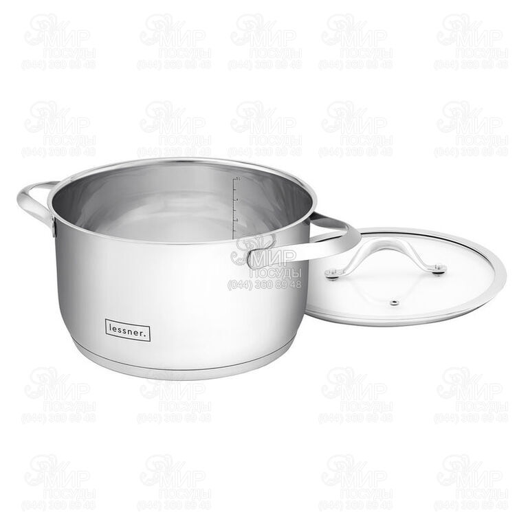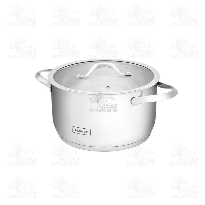 Каструля Lessner має лаконічний сучасний дизайн. Виготовлена із високоякісної корозійностійкої сталі. Багатошарове дно акумулює тепло, сприяє швидкому закипанню та приготуванню їжі навіть за невеликої потужності конфорок. Плоска кришка виготовлена з термостійкого скла, обладнана металевим обідком для міцності та щільнішого закривання, а також отвором для випуску пари.